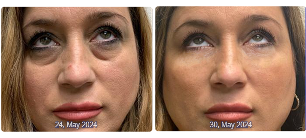 Tap—don’t rub—the cream under your eyes, over crow’s feet, and on the eyelid if needed. Focus on areas with dark circles, puffiness, or fine lines.